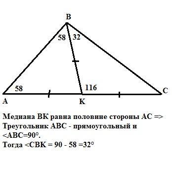 Треугольник ВКС - равнобедренный (ВК = КС - дано). Значит