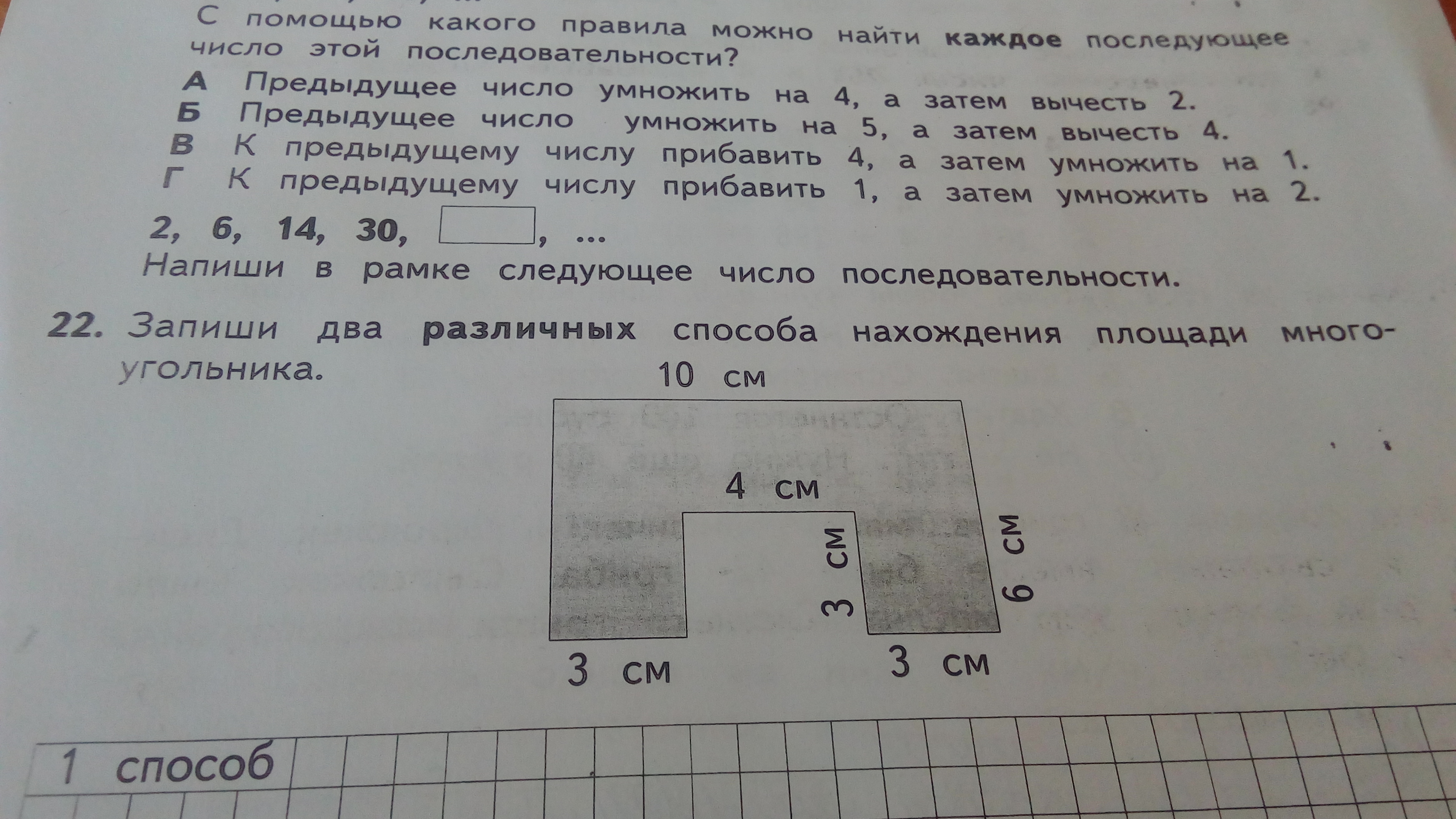 1)Способ:S=a*b=10*6=60см кв
