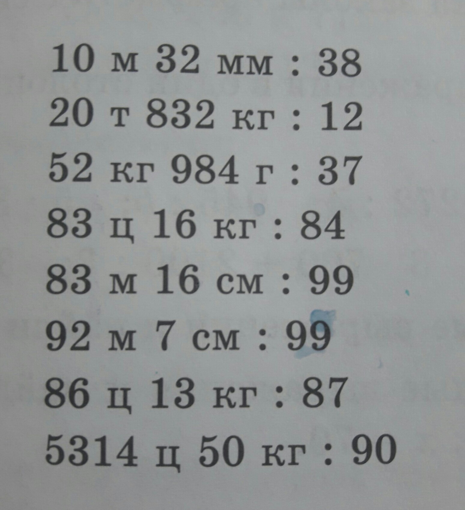 5314ц50кг÷90 = 531450 : 90 = 5905 кг = 59 ц 5 кг = 5 т 905 кг