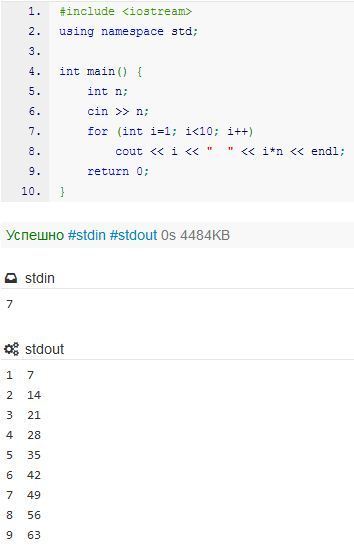 b) Напечатать таблицу умножения на число n (значение n вводится с клавиатуры; 1<n<9).