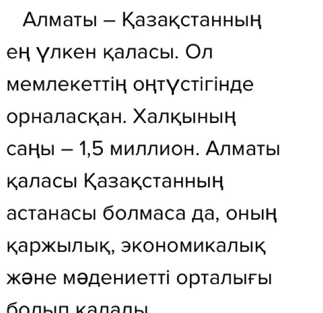 Менің сүйікті қалам Астана. Астана-бас қала, Алматы-жас қала. Астанада көптеген биік ғимараттар өте көп. Солардың бірі бəйтерек, хан шатыр, приамида, бейбітшілік жəне келісім сарайы, нұр астана мешіті. Менің жүрегімді жаулаған бəйтерек. Самұрық құстың ұясы секілді керемет соғылған. Мен Астананы жақсы көрмін.