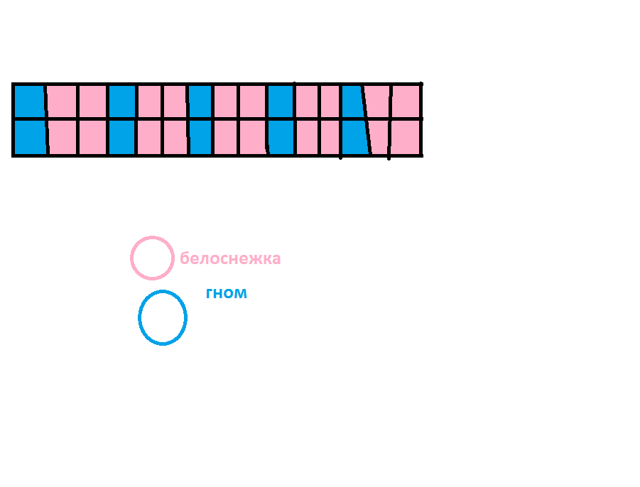 Возьмем 4 места. если по бокам сидят гномы, то белоснежка может сесть на 2 или 3-е место, чтоб сидеть рядом с гномом. 30/4=8 и 2 в остатке.