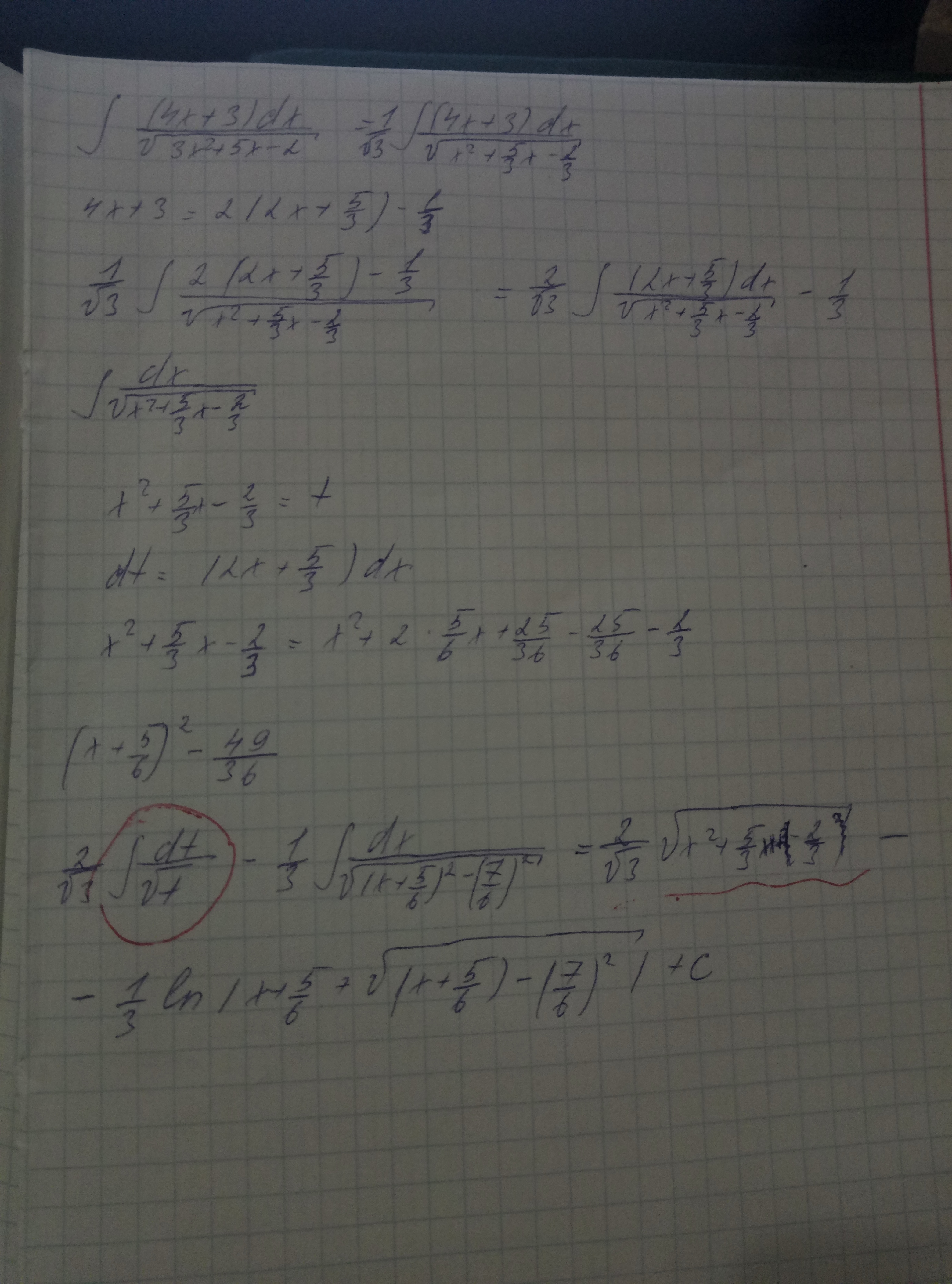 Прошу помочь с примером,не могу понять в чем ошибка.Тема:интегрирование функций содержащий квадратный трехчлен