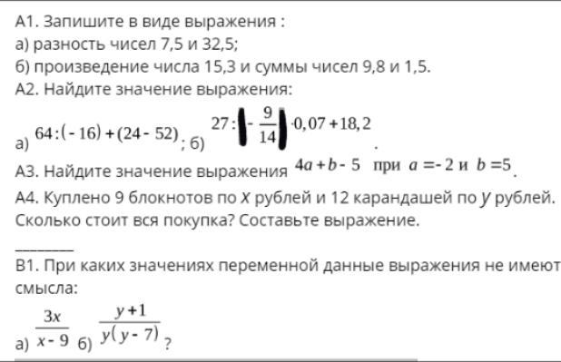 А3. Найдитезначениевыражения 4а+b−5 при a=−2 и b=5.