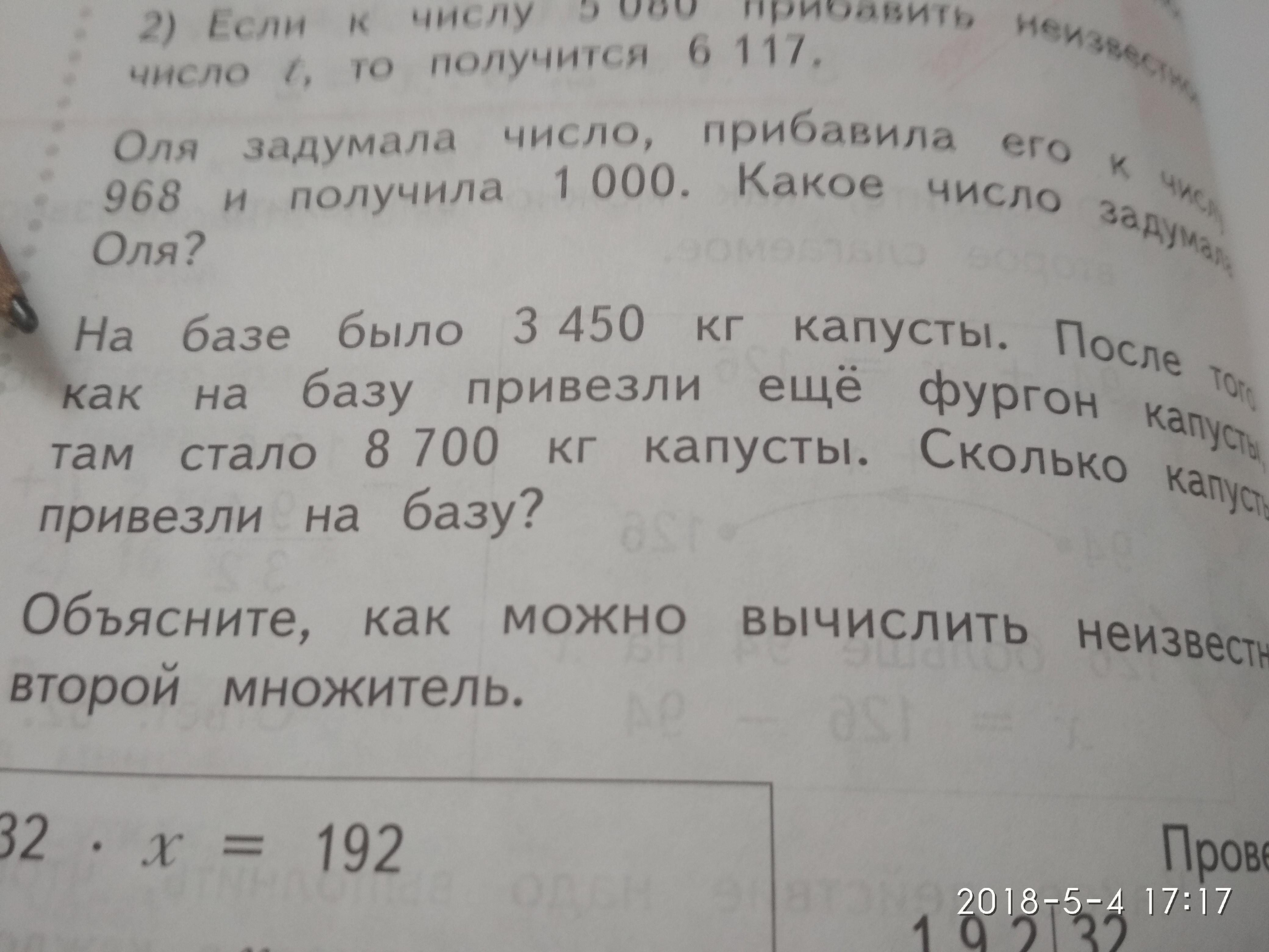 на базе было 3450 кг капусты после того как на базу привезли ещё фургон капусты там стало 8700 кг капусты сколько капусты привезли на базу.