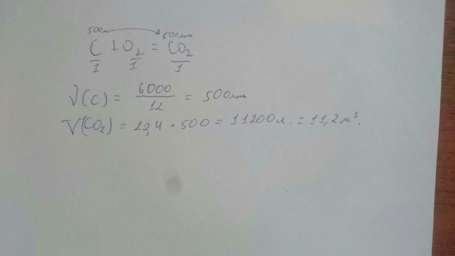 Решите через пропорцию задачу: Сгорело 6 кг угля С. Вычислите объем образовавшегося оксида углерода (IV) (н.у.). Решение напишите в тетради. Заранее спасибо большое. Ответ дайте в метрах кубических.