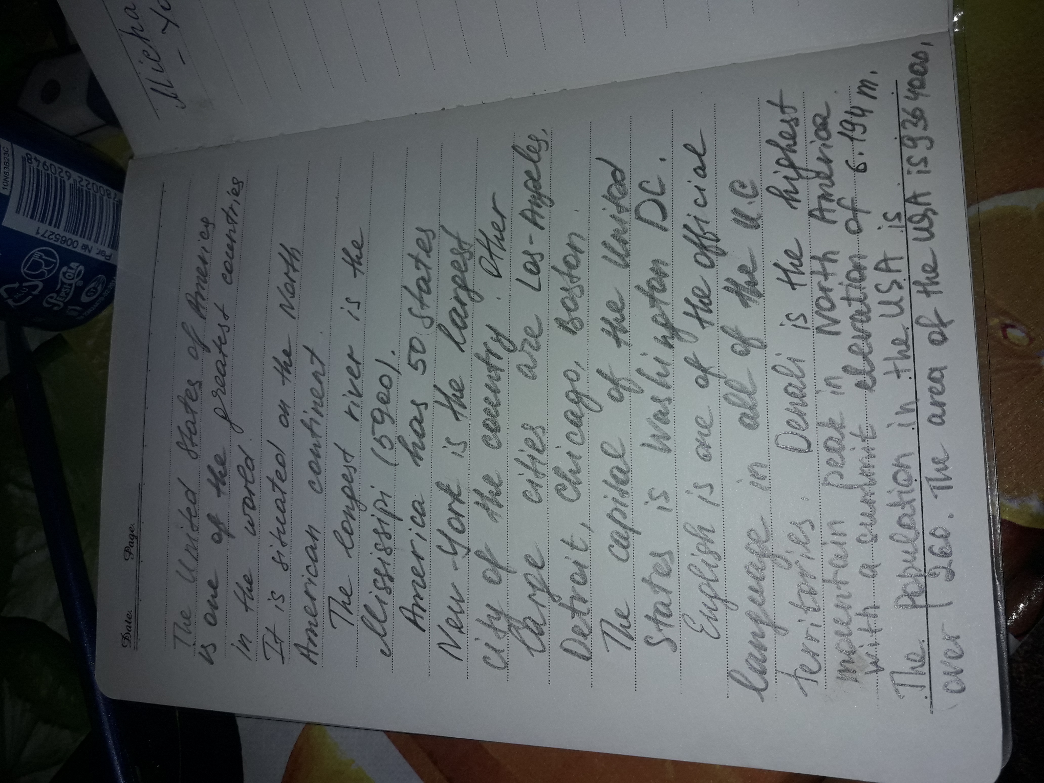 100б нужно соченить текст про USA с такими данными: Location-The central North America; Area-9364000; Population(mil)- over260; Capital-Washington; Largest cities-New York, Los Angeles, Dctroit, Chicago, Boston; Highest point(m)-Mount Mc Kinley 6194; Longest river(km)-The Mississipi 5900; Main Languages-English; Government-Federal Republic of 50 ststes.