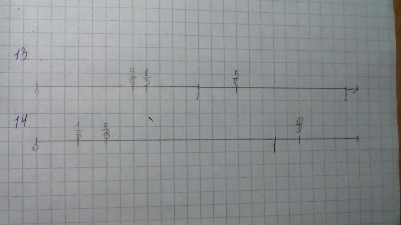 13. Начертите координатную прямую с единичным отрезком 12 клеток и отметьте на ней 7/12 ;2/3 ; .5/4