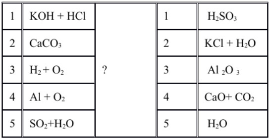 Даны химические реакции: на одной половине – исходные вещества, а на