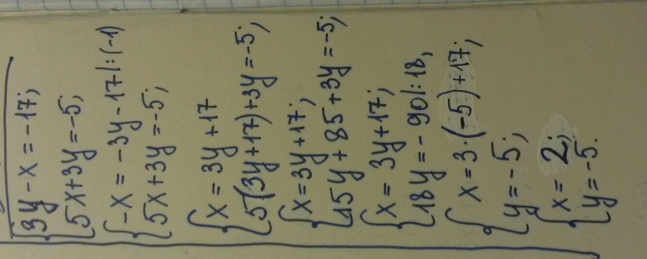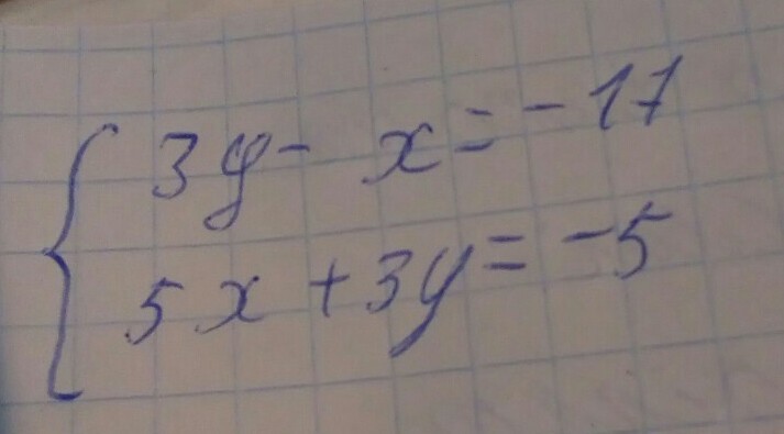 и дальше как простое уравнения , и потом в уравнение 3y-x=-17 место y подставь то что получилось и всё (x;y)