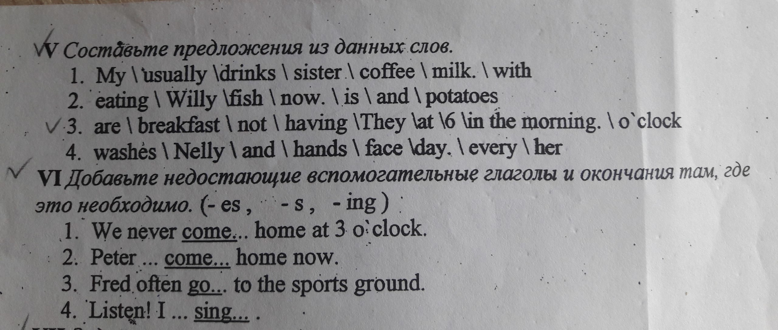 1. My sister usually drinks coffee with milk.