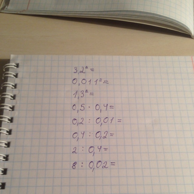 ответ 1) 3,2*3,2=10,24 2) 0,011*0,011=0,000121 3)1,3*1,3=1,49 4)0,2 5)20 6)2 7)5 8)400