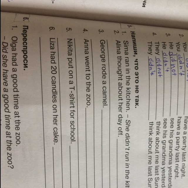 5)Nikita didn't put on a T-shirt for school.