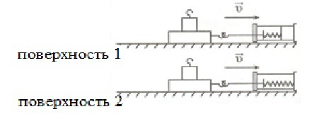 Мы можем наблюдать, что у нас имеются две разные поверхности и на них разная сила трения скольжения, действующая на брусок, причем трение бруска о вторую поверхность больше, чем о первую. Значит, трение скольжения для второй поверхности больше по сравнению с первой