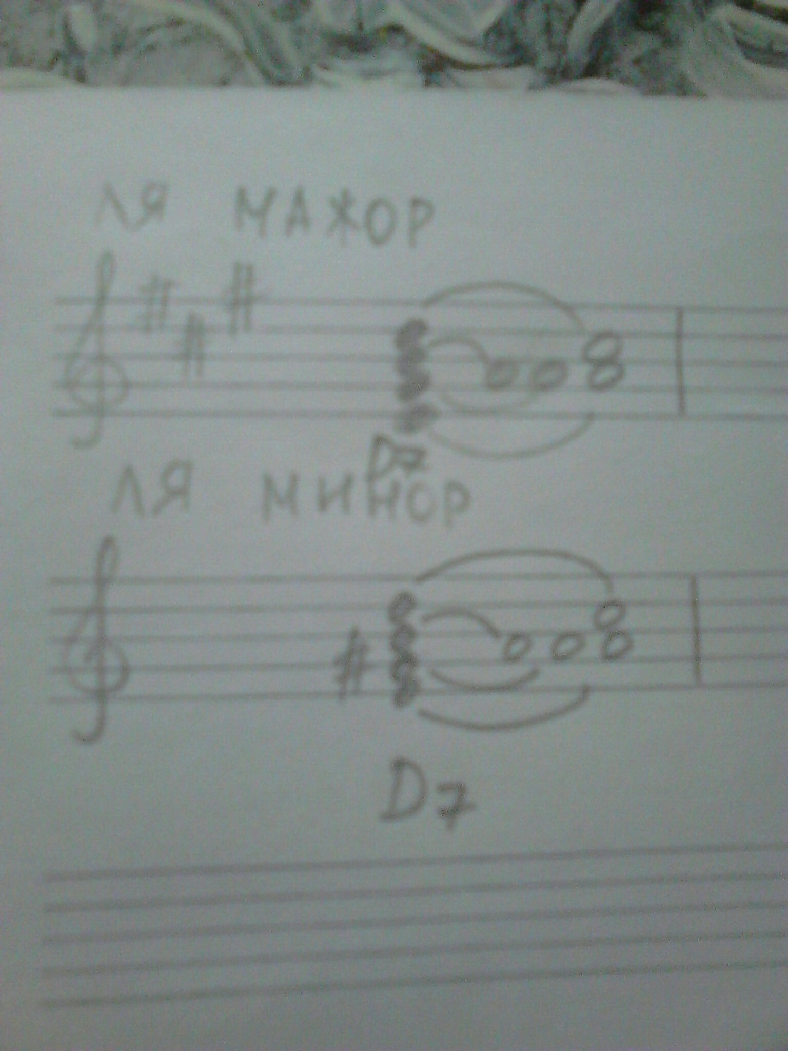 Разрешение в ля мажор: ля ля ля до диез, разрешение в ля минор: ля ля ля до.