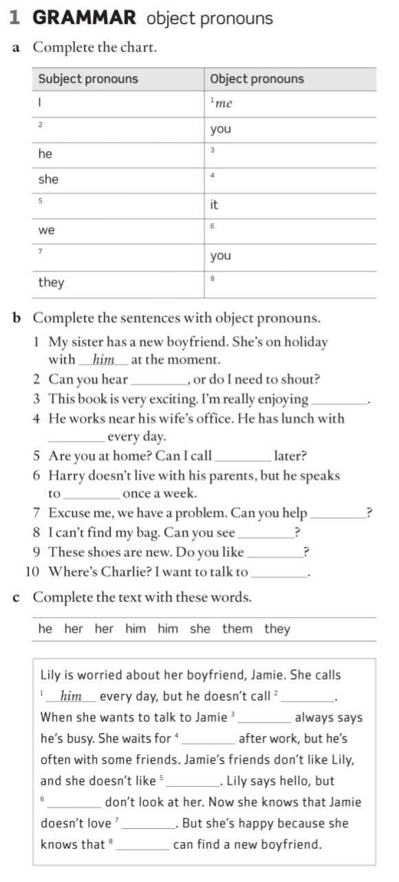 b) 2 me 3 it 4 her 5 you 6 them 7 us 8 it 9 them 10 him