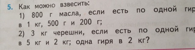 2) На первые весы 3кг черешни и гирю 2кг, а на вторые гири 5кг.