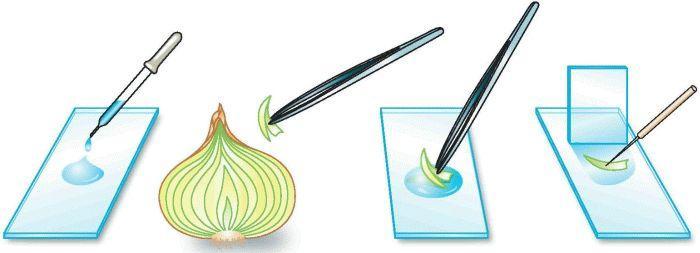 Дя приготовления препарата используют либо тонкий срез растения, который делается при помощи микротома или аккуратно отделяют тонкий кожицу эпидермиса. В школе готовят препарат из кожицы лука. Для этого: