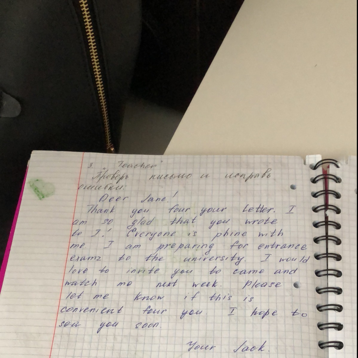 Thank you for your letter. I am so glad that you wrote to me. Everyone is fine with me. I am preparing for entrance exams to the university. I would love to invite you to come and watch me next week. Please let me know if this is convenient for you. I hope to see you soon.