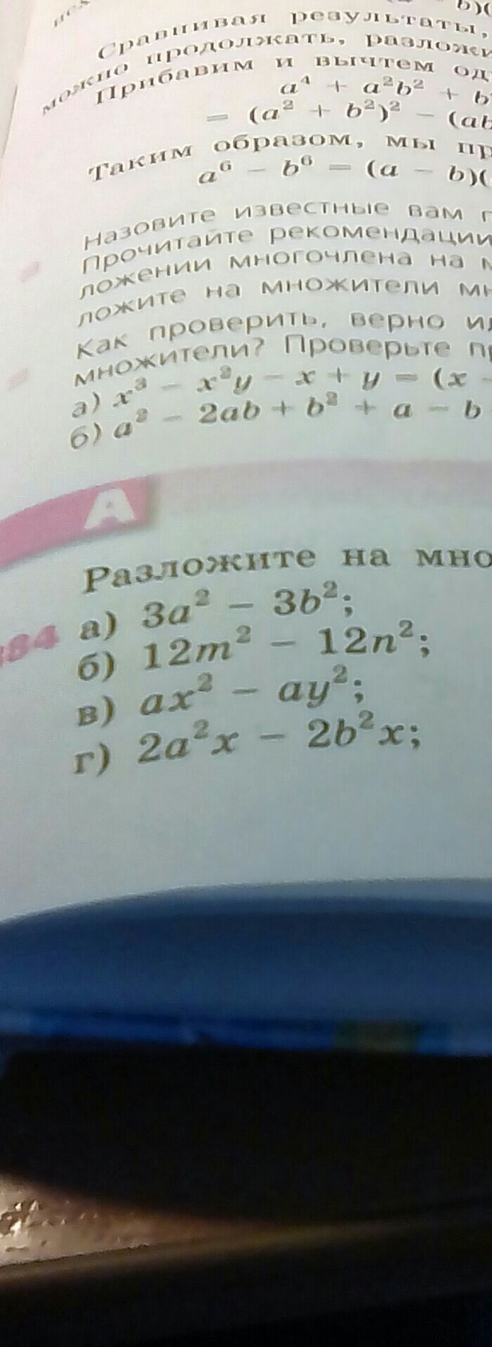 г) 2a²x-2b²x = 2x(a²-b²) = 2x(a-b)(a+b)