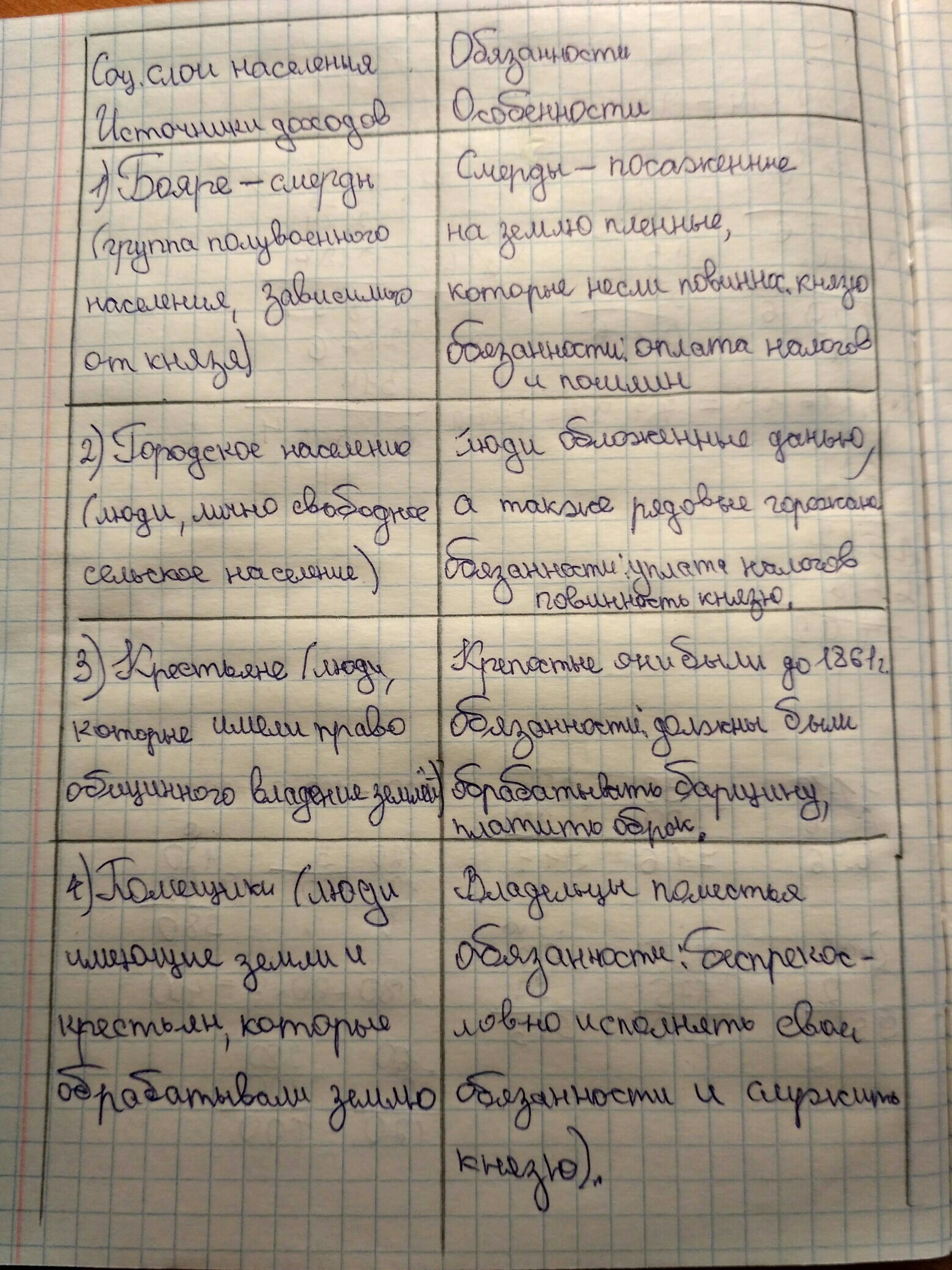 Соц. слои населения Обязанности Источник дохода Особенности