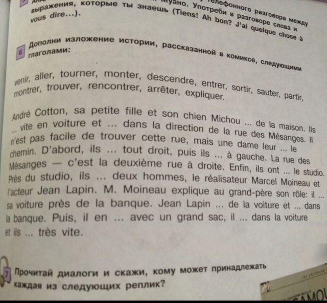 5.Viennent 6. Tournent 7. Trouvé 8. Rencontrent 9. Arrete 10. Descend 11. Entre 12. Sorti 13. Saute 14. Partent