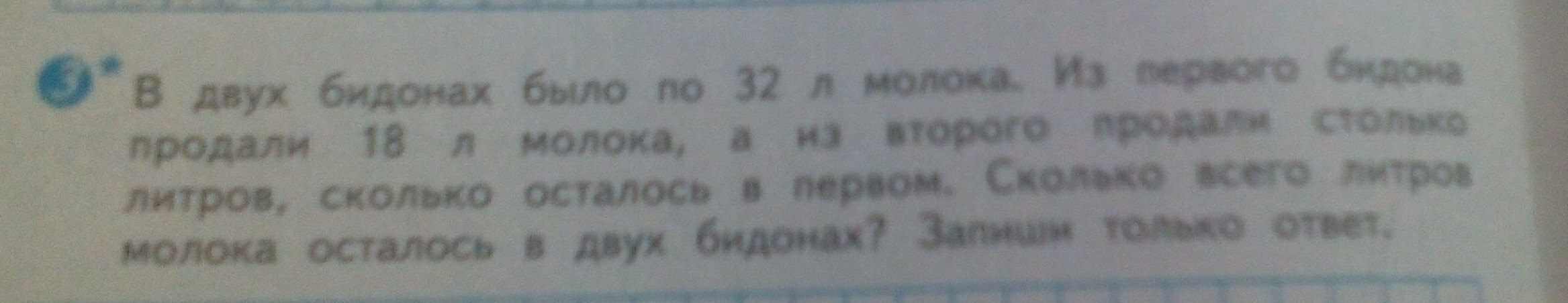 1)32-18=14(литр.) - осталось в первом бидоне.