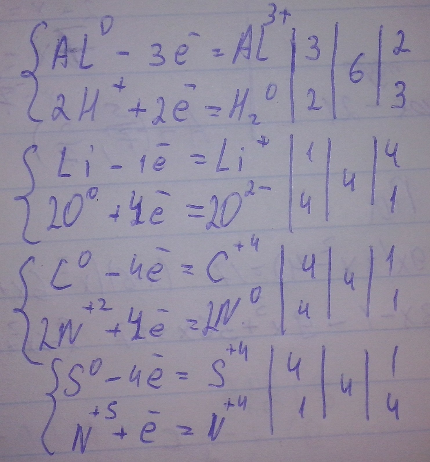Li⁰ - e⁻ = Li⁺ |4 - восст-ль, пр. ок-я