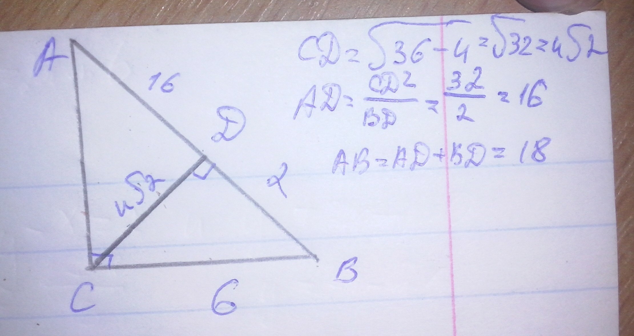 Из вершины прямого угла "С" треугольника АВС проведена высода СD.
