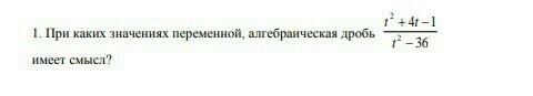 Если знаменатель не равен 0, т.е. переменная t не равна 6 и не равна -6