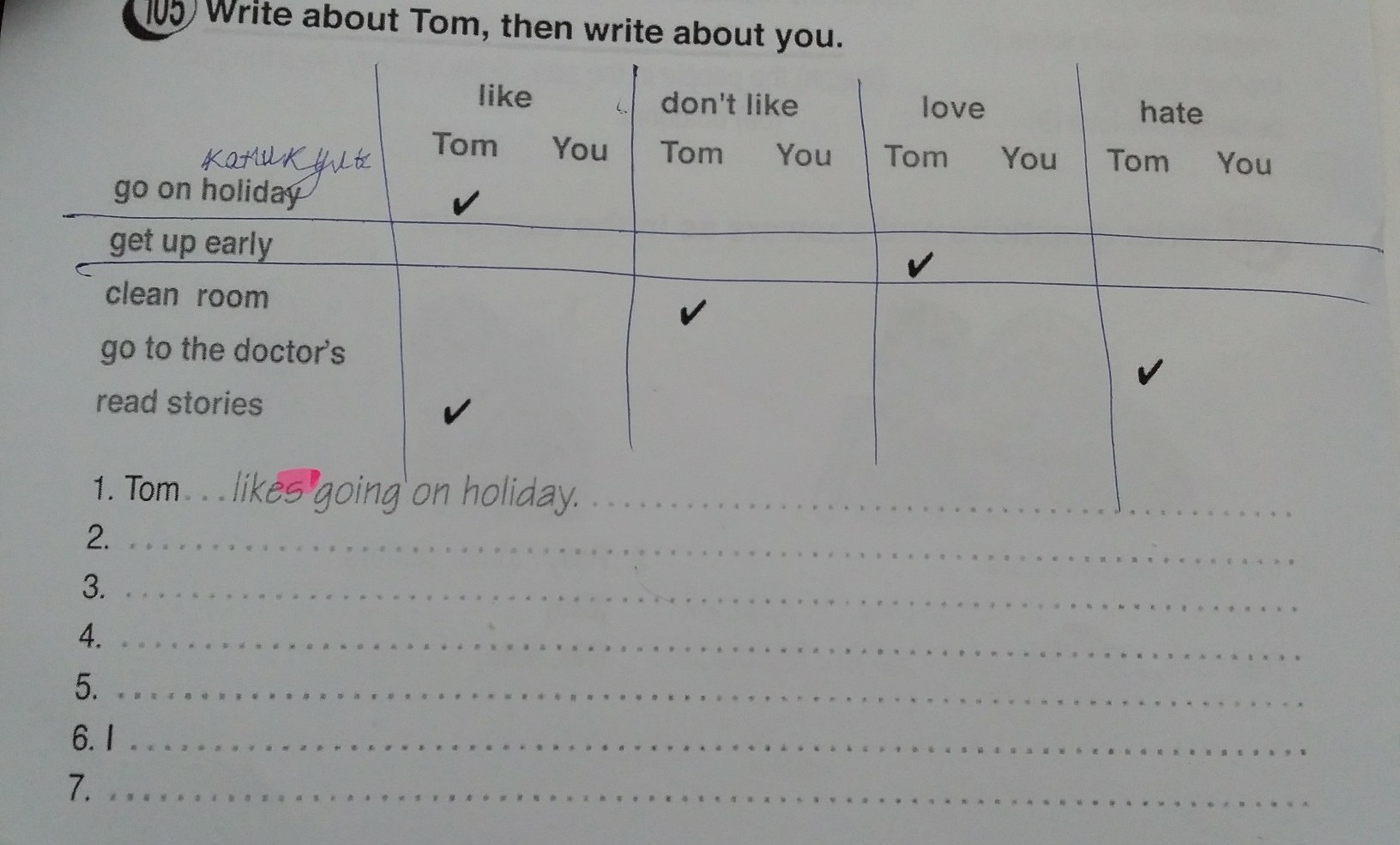 3.Tom doesn´t like cleaning room