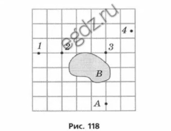 На рис. 118 показаны точечный источник света А и непрозрачный предмет В. Какие точки, показанные на рисунке, находятся в тени?