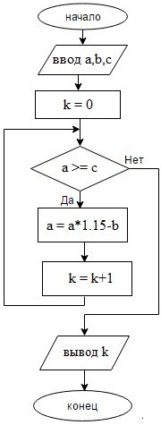 1. (25). Запас рыбы в пруду оценён в А тонн. Ежегодный прирост рыбы составляет 15%. Ежегодный план отлова — В тонн. Наимень¬ший запас рыбы составляет С тонн. (Запас ниже С тонн уже не восстанавливается.) Составьте программу для под¬счёта количества лет, в течение которых можно выдерживать заданный план. (Для примера: А=10, В=2, С=2)
