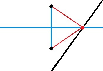 1) пересекать серединный перпендикуляр - единственное решение (точка),