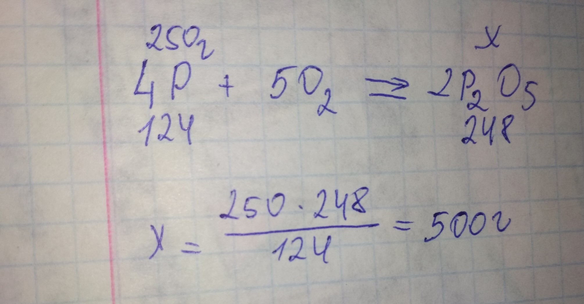 1 . Определить массу оксида фосфора (Р2О5) который образовался из фосфора массой 250 г и кислородом