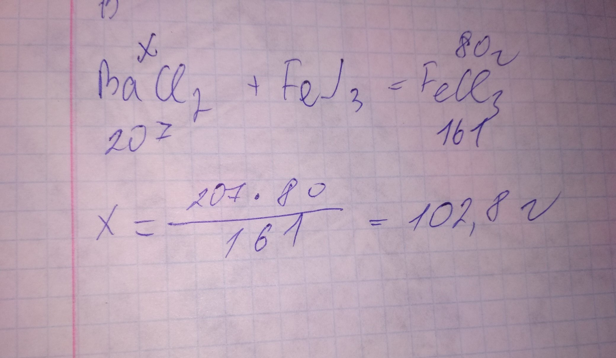 2 . Определить сколько понадобится хлорида бария (ВаСl2) чтобы получить 80 г хлорида железа FeCl3