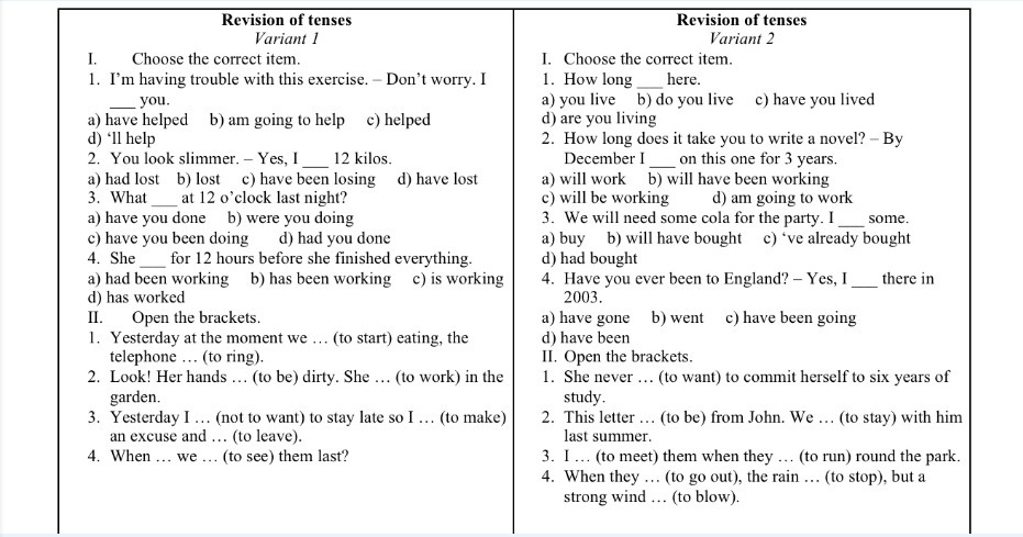 Каких примеров? Тут просто букву выбрать. Это не сложно, если ты хорошо знаешь времена в английском языке.