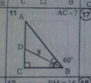треугольник АВС, угол С равен 90 градусов, угол В равен 60 градусов, ВД биссектриса равна 8 см, найти сторону АС