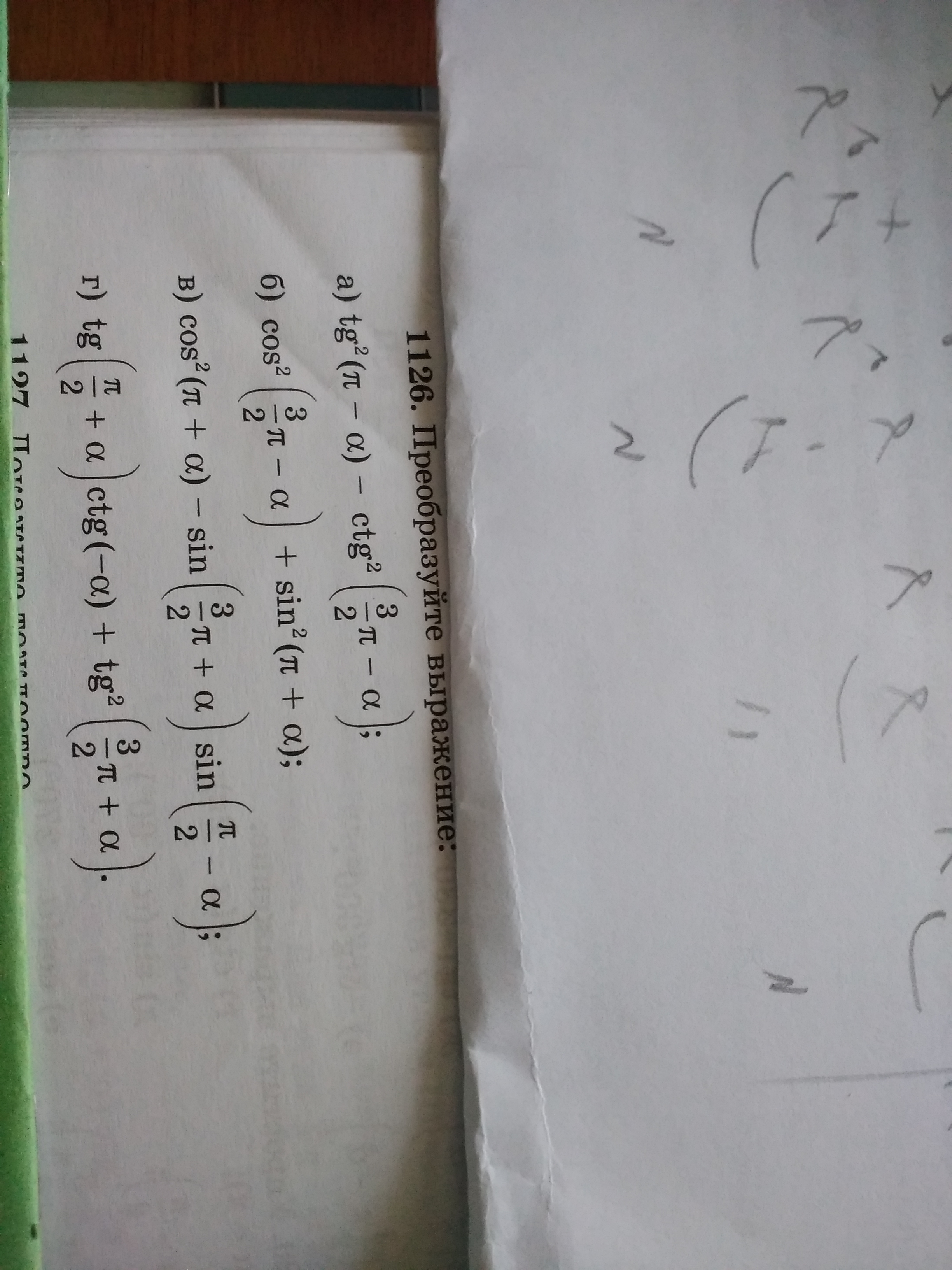 tg(π/2+α)ctg(-α)+tg²(3π/2+α)=-ctgα(-ctgα)+(-ctgα)²=ctg²α+ctg²α=2ctg²α