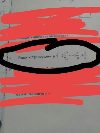 Решите пропорцию y : (- 2 1/7) = - 1 5/9 : 4 1/6