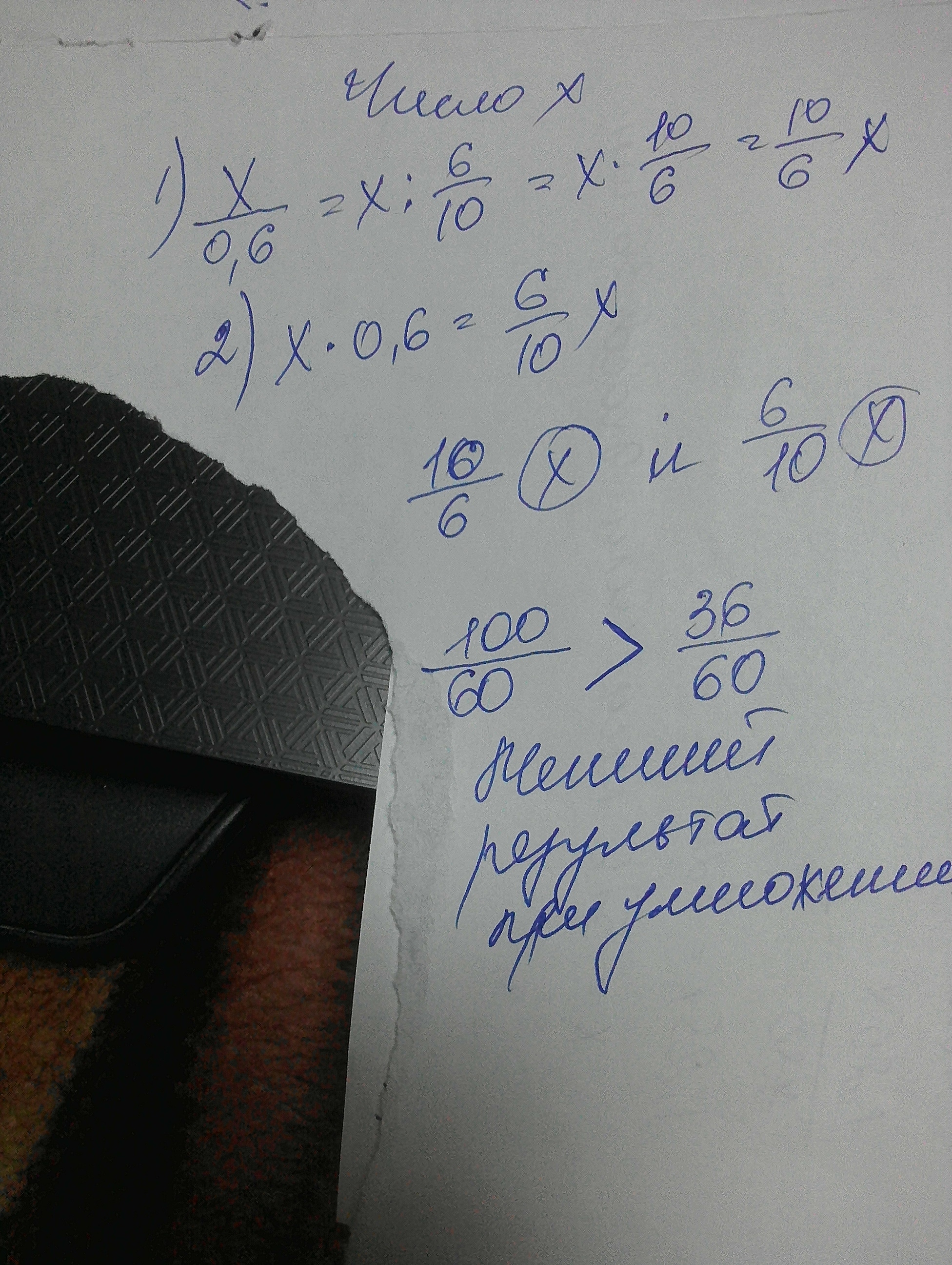 Первый раз числа а разделилась на 0,6 а второй раз число а умножили на 0,6 в каком случае получили меньший результат почему