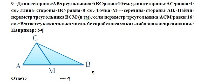 Р=СМ+МВ+СВ=7+5+8=20 см - периметр треугольника СВМ