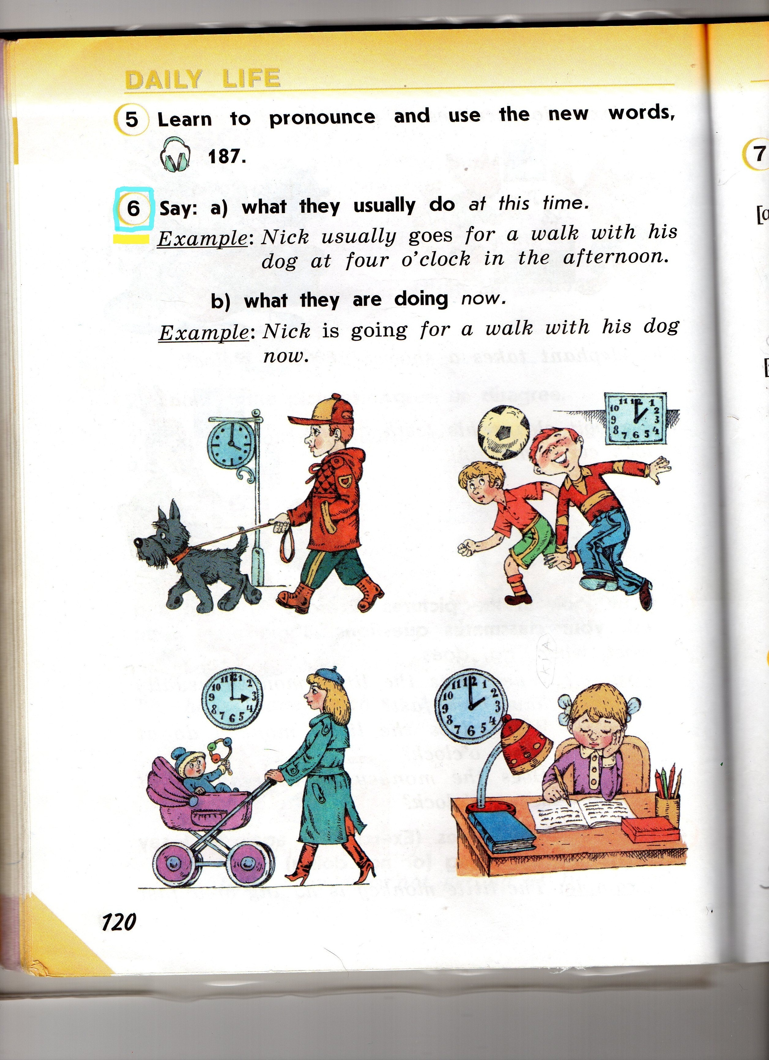 My mother usually goes for a walk with my little sister at three o`clock at the afternoon.