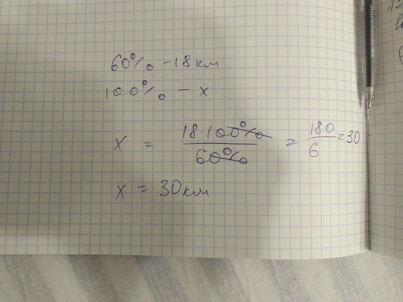 60%=0,6. 18:0,6=30 км - длина всего пути