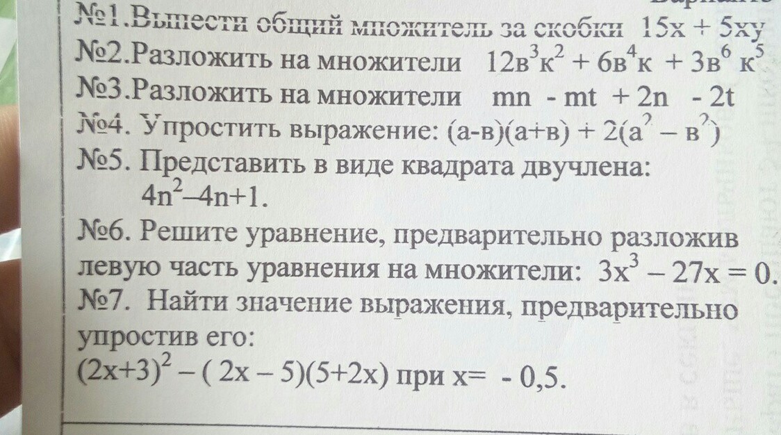 2) 12в³к² + 6в⁴к + 3в⁶к⁵ = 3в³к(4к + 2в + в³к⁴)