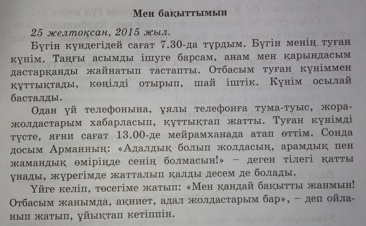 Позже на домашний телефон позвонили родственники и друзья, и поздравили меня с днем рождения. День рождения я отвечал в обед, в 13:00 дня, в ресторане. Потом мой друг Арман сказал «Пусть будут верные друзья, чтоб ты не знал что такое горе и несчастье!»- это поздравиление мне очень понравились, можно сказать что осталось в моем сердце.