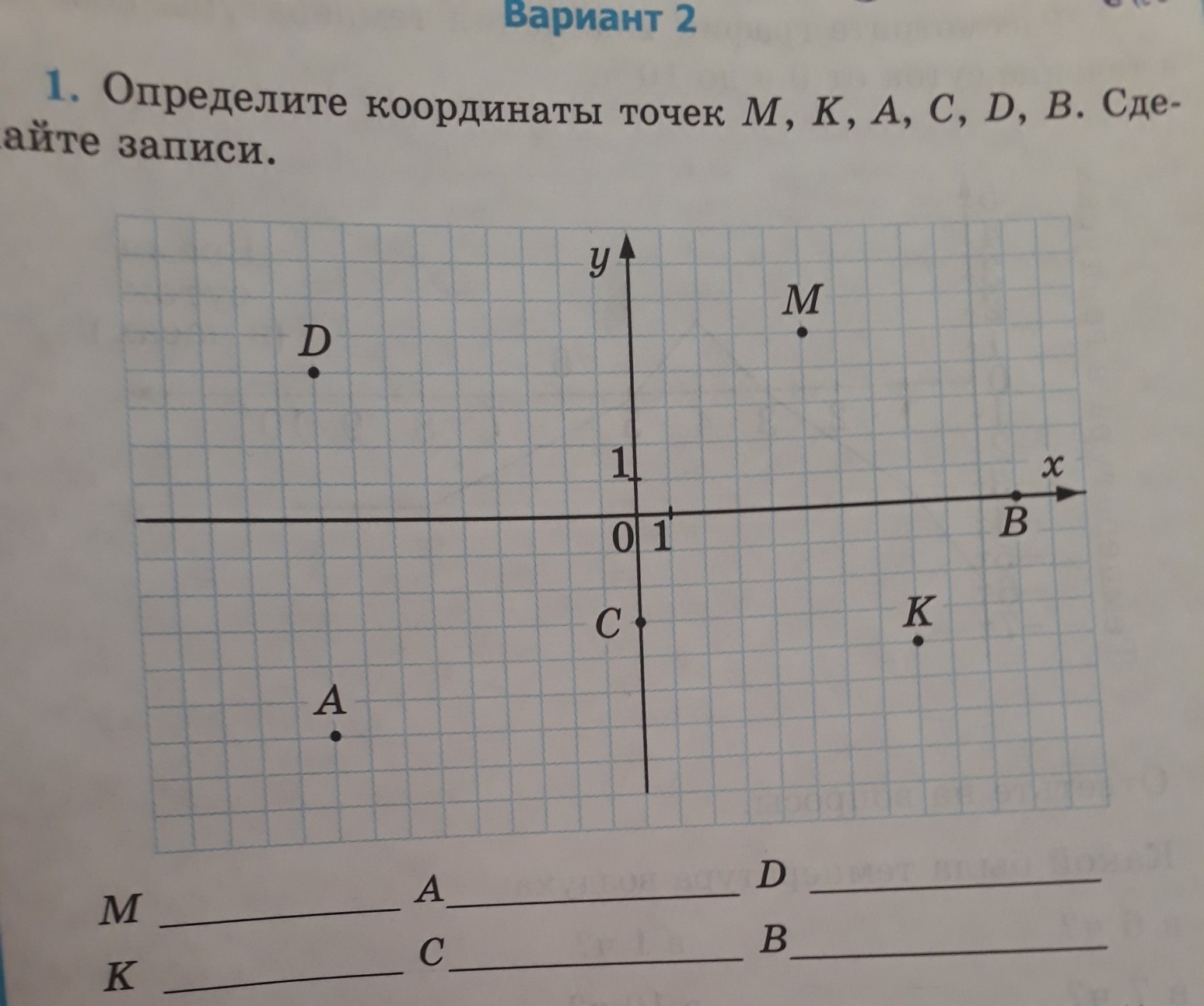 M(5;5), K(8;-4), A(-9;-6), C(0;-3), D(-9;4), B(11;0).