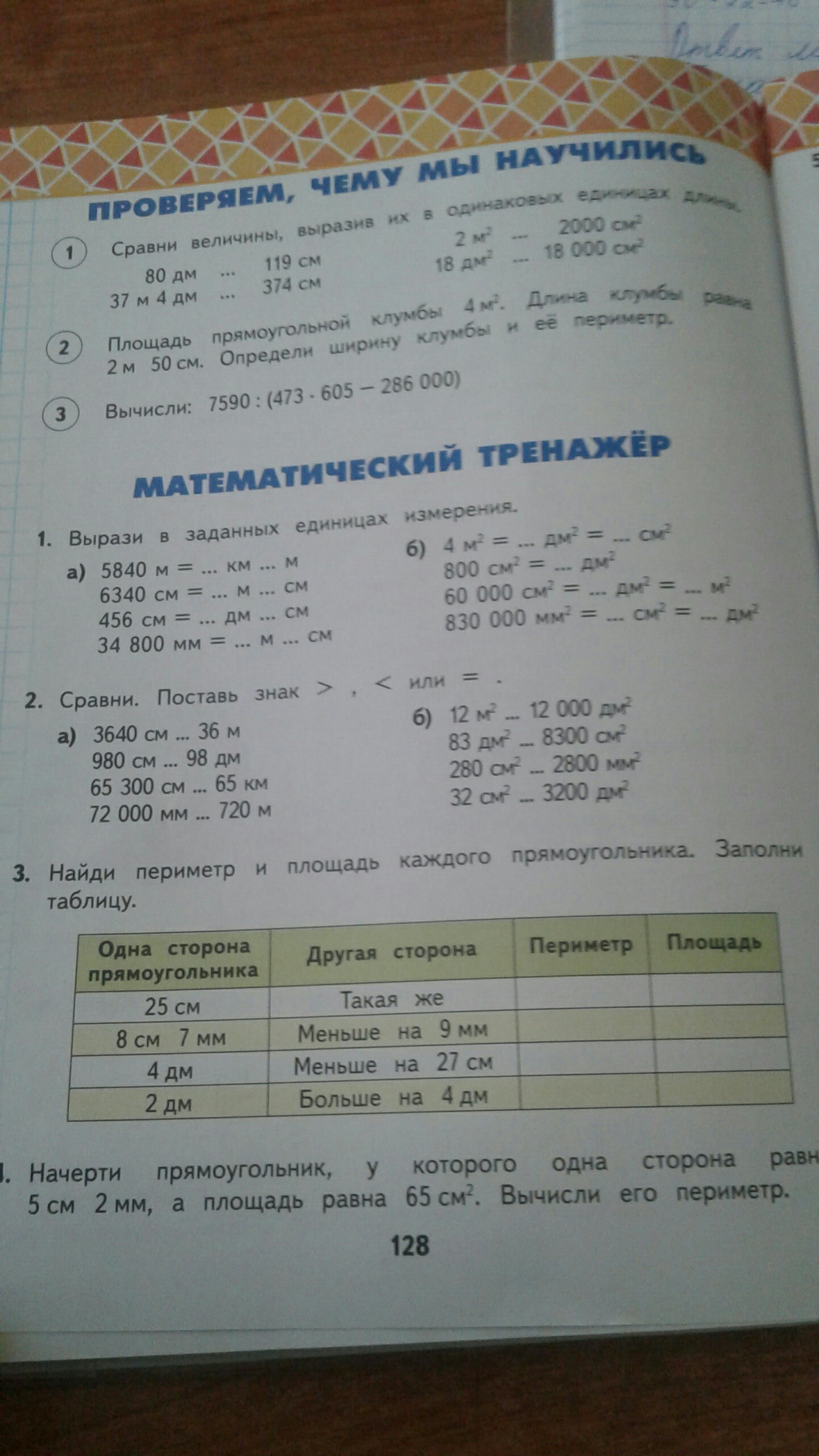 5840 м = 5 км 840 м 4 м в квадрате = 400 дм в квадрате =40000см