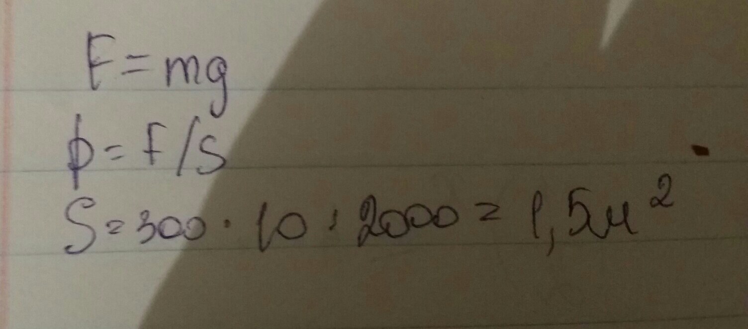 Сила тяжести колонны F=m*g, давление есть р=F/S, площадь S=300*10/2000=1.5 м²