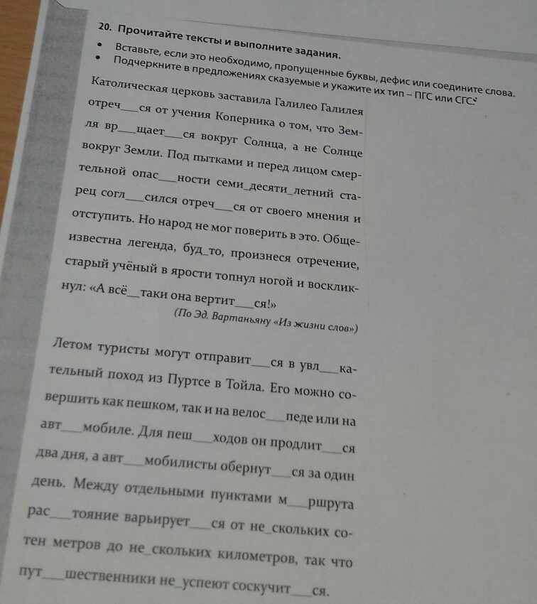 Католическая церковь ЗАСТАВИЛА Галилео Галилея ОТРЕЧЬСЯ(СГС) от учения Коперника о том, что Земля ВРАЩАЕТСЯ(ПГС) вокруг Солнца, а не Солнце вокруг Земли. Под пытками и перед лицом смертельной опасности семидесятилетний старец СОГЛАСИЛСЯ ОТРЕЧЬСЯ (СГС) от своего мнения и ОТСУПИТЬ(+ согласился = СГС). Но народ НЕ МОГ ПОВЕРИТЬ(СГС) в это. Общеизвестна легенда, будто, произнеся отречение, старый ученый в ярости ТОПНУЛ(ПГС) ногой и ВОСКЛИКНУЛ (ПГС):" А все-таки она ВЕРТИТСЯ(ПГС)!"